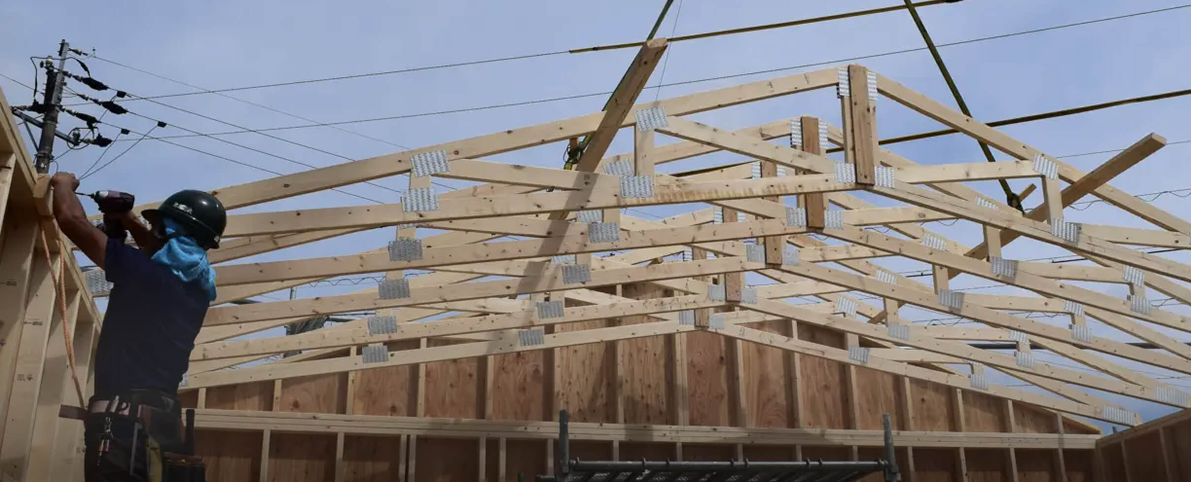 ○木造ガレージを自社工場で加工し、現場にて組み立てます。