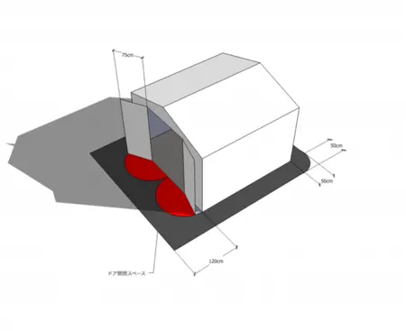 前面パネル部分はドアを開けられるように900mmスペースを確保してください。