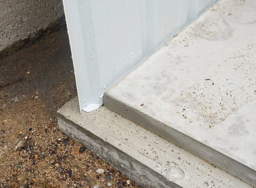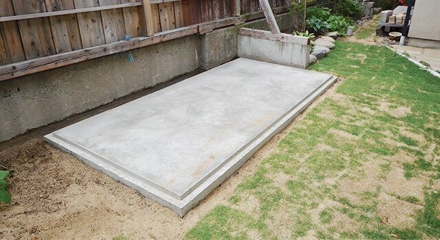 日本でユーロ物置®︎を設置する際にコンクリート基礎をお選び頂いた場合、凸状に施工して頂くようお願いをしております。これは、床のないユーロ物置®︎の中に雨水が侵入しないようにするための工夫です。