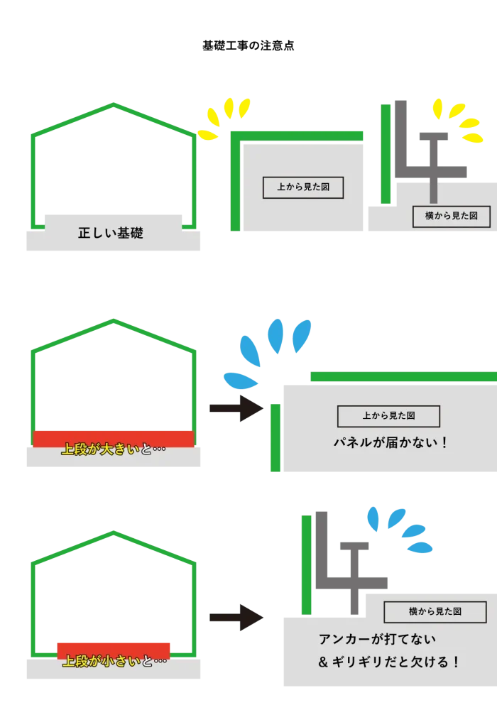 基礎の施工時には下記事項にお気をつけ下さい。