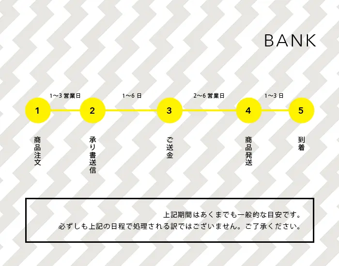 - ご入金確認後、6〜14営業日以内に商品を発送します。※ご注文内容によって変動します。