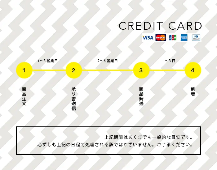 - 「ご注文承り書」発行後、6〜14営業日以内に商品を発送します。
