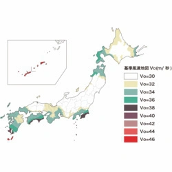 Voとは、日本の建築基準法で制定された各地域の建物設計用の風速値です。過去の気象データの集積を基に風速30m/sec〜42m/secの風速帯での10分間の平均風速とされています。