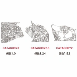 カテゴリ3は住宅や建物の間隔が密な区域で、郊外の住宅地のような状況を指します。