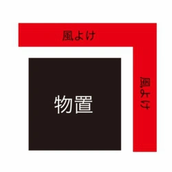 もし性能表示W41m/secを上回ってしまったら、設置場所を考え直してみましょう。 例えば、風よけのある場所に置いたり、風よけを設置するのも方法です。(左図は風よけの例です。)
